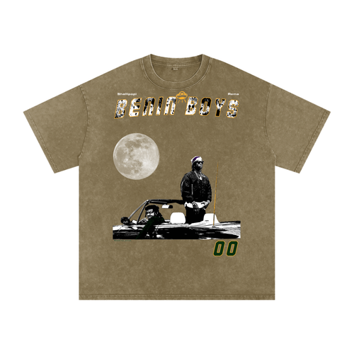 T-shirt oversize en coton délavé à la neige imprimé Benin Boys